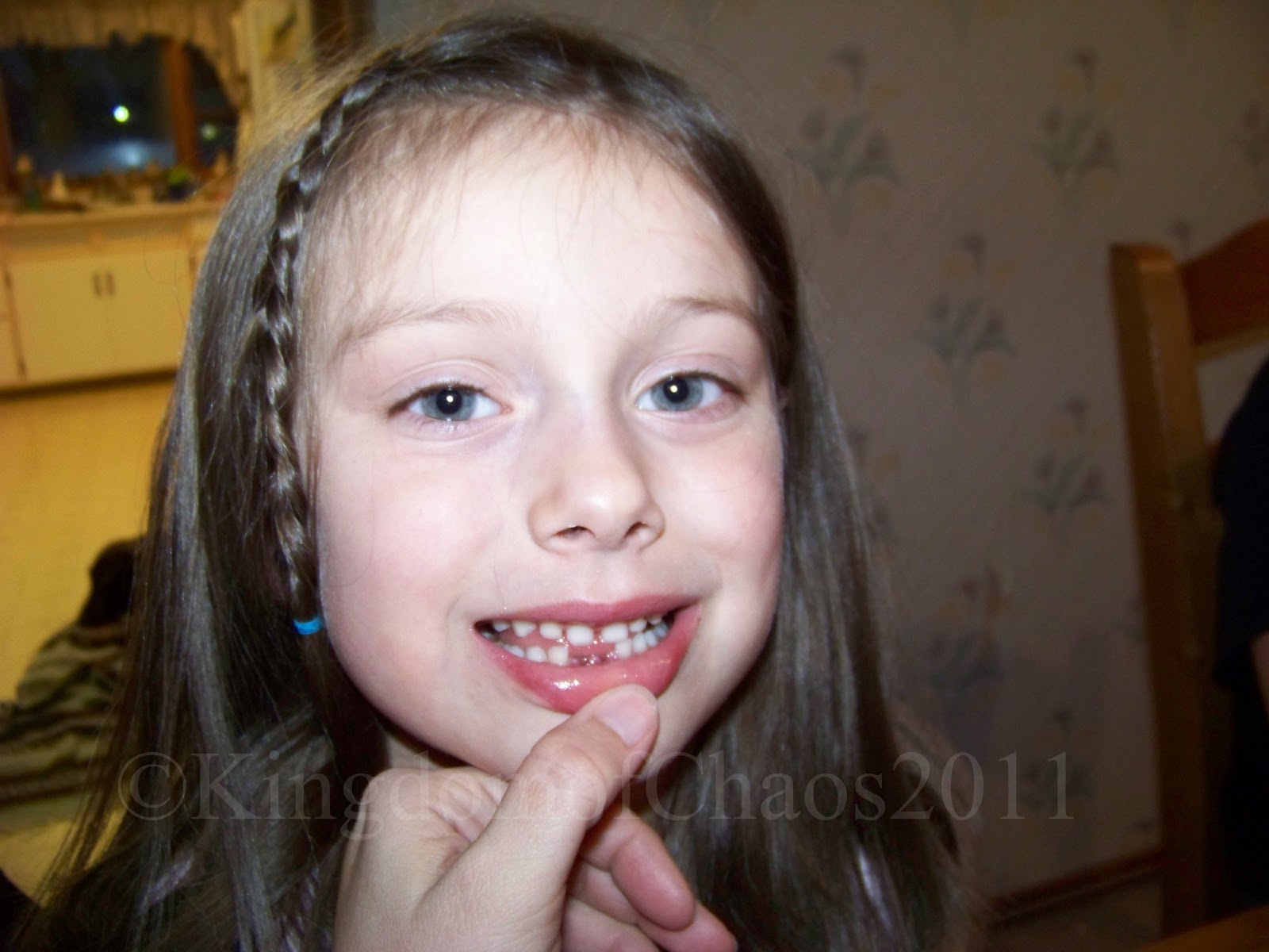 Southern Darlin' has decided maybe it would be nice to have a tooth fall out of her head- just for the money, of course. And naturally it's not fair that Spoiled Princess who is an entire year younger lost not one but two teeth first. :sigh: At least she's gotten over the thought that she would keep her baby teeth forever and ever amen.